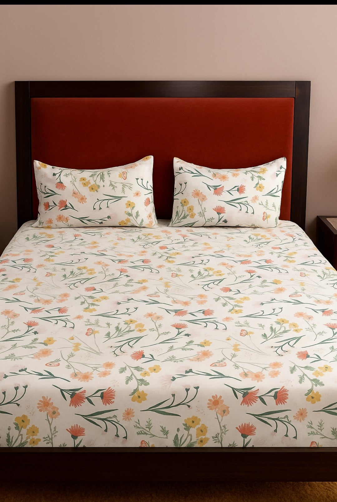 Premium cotton 2 pillow cover and 1 king size bed sheet